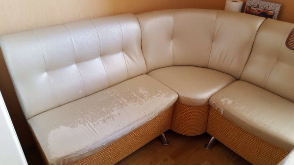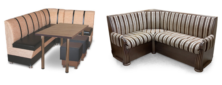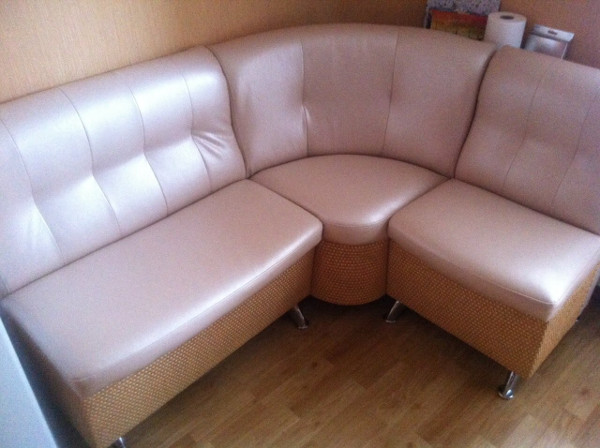 Кухонні куточки оббиваються тканиною, шкірою або шкірозамінником. Кожен матеріал має свої недоліки та переваги.